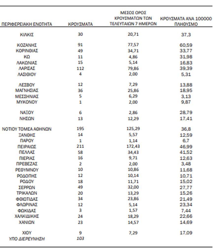 - 112 κρούσματα στην Π.Ε. Λάρισας