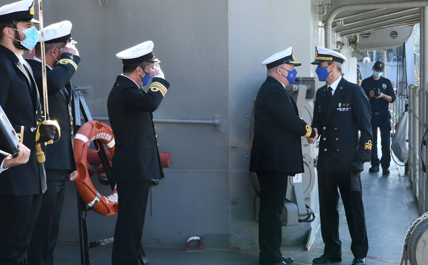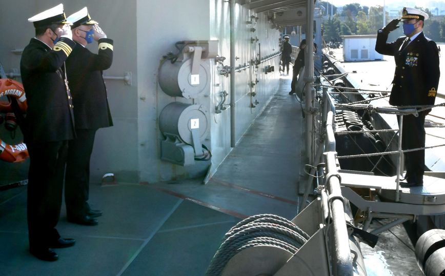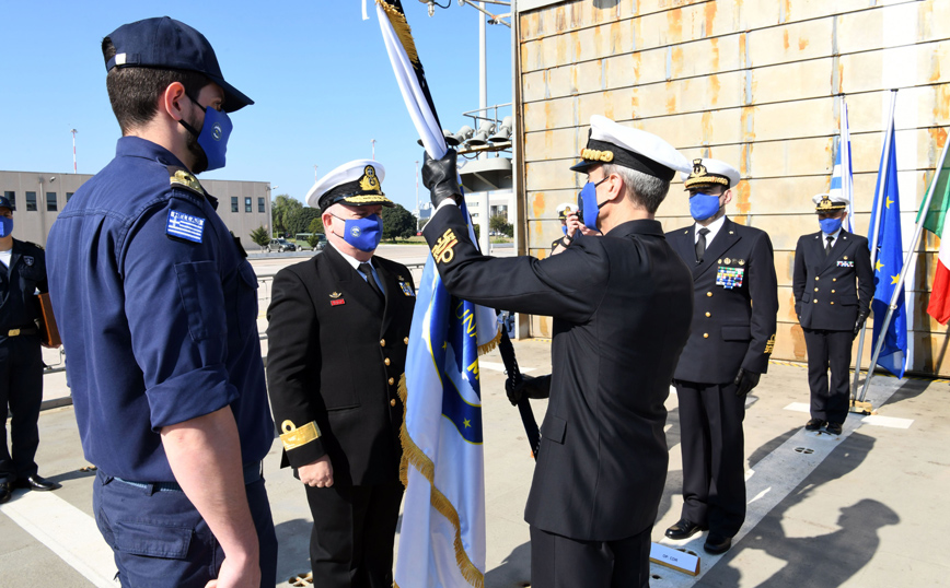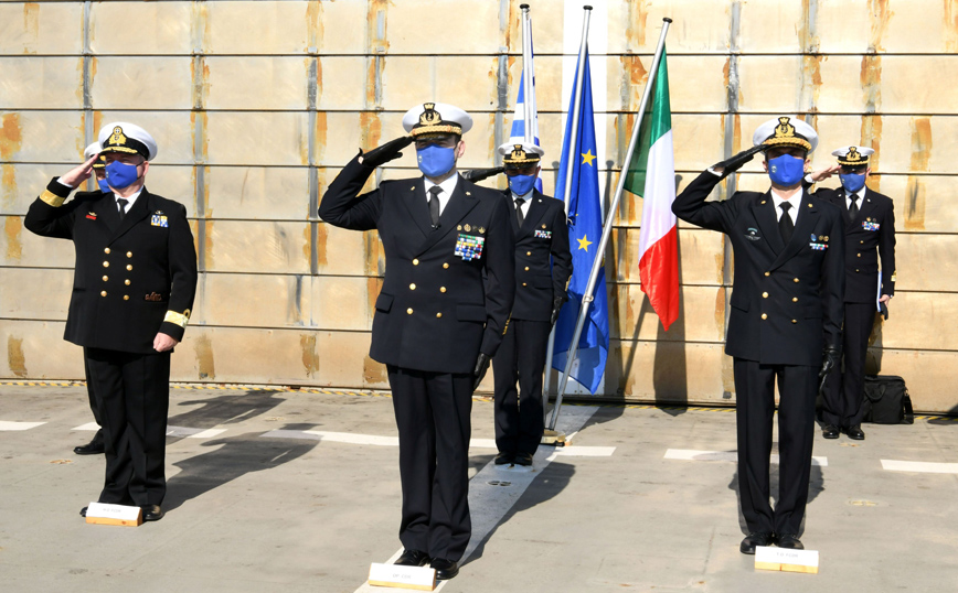 Η τελετή παράδοσης-παραλαβής των καθηκόντων διοικητή εν πλώ (COM FHQ) της επιχείρησης IRINI από τον αρχιπλοίαρχο Θεόδωρο Μικρόπουλο στον Ιταλό υποναύαρχο Stefano Frumento πραγματοποιήθηκε χθες στη ναυτική βάση Τάραντα της Ιταλίας, παρουσία του Ιταλού διοικητή της επιχείρησης ναυάρχου Fabio Agostini.