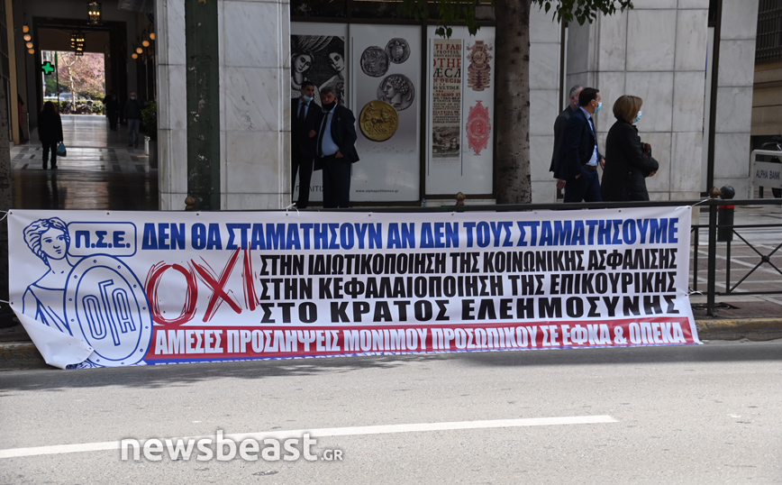 Σε 48ωρη πανελλαδική απεργία προχωρούν σήμερα (06/04) και αύριο (07/04) εργαζόμενοι στα ασφαλιστικά ταμεία. Στο πλαίσιο αυτό, πραγματοποιούν και κινητοποίηση έξω από το υπουργείο Εγασίας.