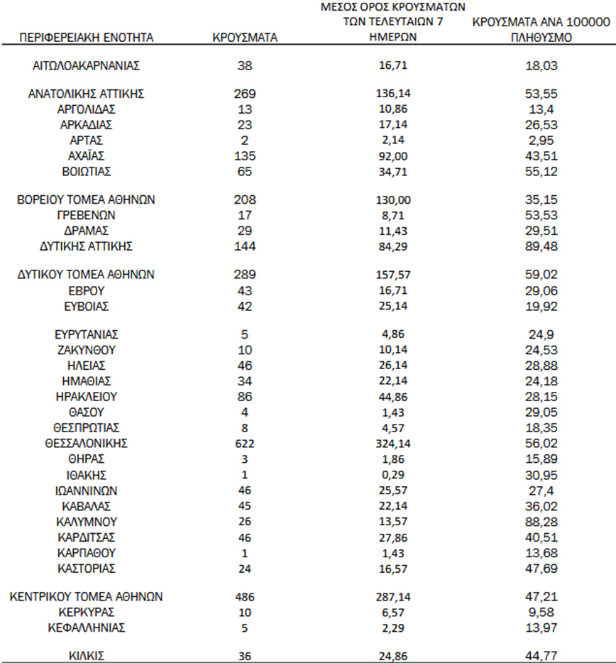 - 38 κρούσματα στην Π.Ε. Αιτωλοακαρνανίας