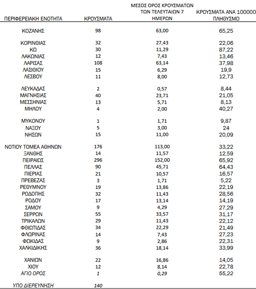 - 135 κρούσματα στην Π.Ε. Αχαΐας