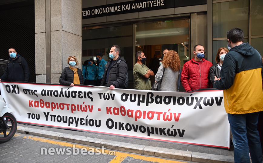 Έξω από το υπουργείο Οικονομίας και Ανάπτυξης βρίσκονται παραγωγοί και έμποροι των λαϊκών αγορών οι οποίοι πραγματοποιούν διαμαρτυρία. Στο ίδιο σημείο έχουν συγκεντρωθεί και καθαρίστριες του υπουργείου Οικονομικών των οποίων έληξε η σύμβαση αλλά και εργαζόμενοι στα Ναυπηγεία Σκαραμαγκά.