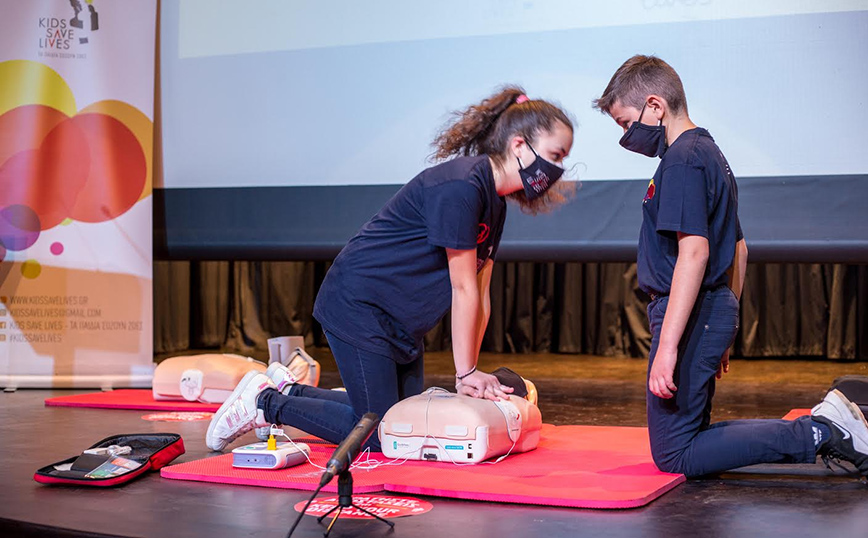 Πρόκειται για τη μαθήτρια της Β’ Γυμνασίου Μαρία Λαζαρίδη, το μαθητή της ΣΤ ΄Δημοτικού Ραφαήλ Λαζαρίδη και τον 6χρονο Αύγουστο Θωμαΐδη-Κόττη που δείχνουν πως μπορούν να σώσουν μια ζωή κάνοντας Καρδιοπνευμονική Αναζωογόνηση (ΚΑΡΠΑ) προσαρμοσμένη στα υγειονομικά πρωτόκολλα που εφαρμόζονται λόγω Covid, χωρίς να δώσουν το «φιλί της ζωής». Με την ΚΑΡΠΑ καθώς επίσης και με την έγκαιρη χρήση ενός Αυτόματου Εξωτερικού Απινιδωτή εντός 3-5 λεπτών μπορεί να αναταχθεί μια θανατηφόρα καρδιακή αρρυθμία και να σωθεί ένας άνθρωπος. Στο αφιέρωμα παρουσιάζεται από τον πρόεδρο του Κids Save Lives, Αναστάση Στεφανάκη και η νέα ειδική εφαρμογή « I save lives» η οποία θα καλεί το 166 σε επείγοντα περιστατικά.