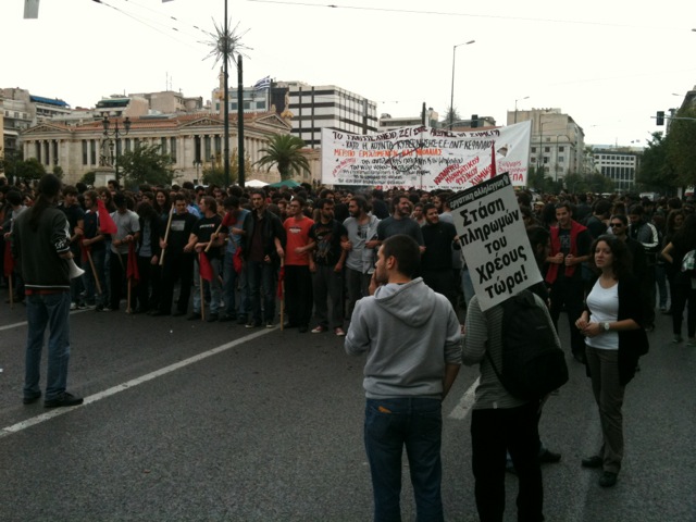 Πορεία διαμαρτυρίας προς τη Βουλή ετοιμάζονται να πραγματοποιούν φοιτητικοί σύλλογοι και μέλη της ΑΝΤΑΡΣΥΑ. Οι φοιτητές φωνάζουν συνθήματα όπως: «Ο Τεμπονέρας ζει» ενώ διαμαρτύρονται για τις αλλαγές που προωθεί στην Τριτοβάθμια Εκπαίδευση η κυβέρνηση.