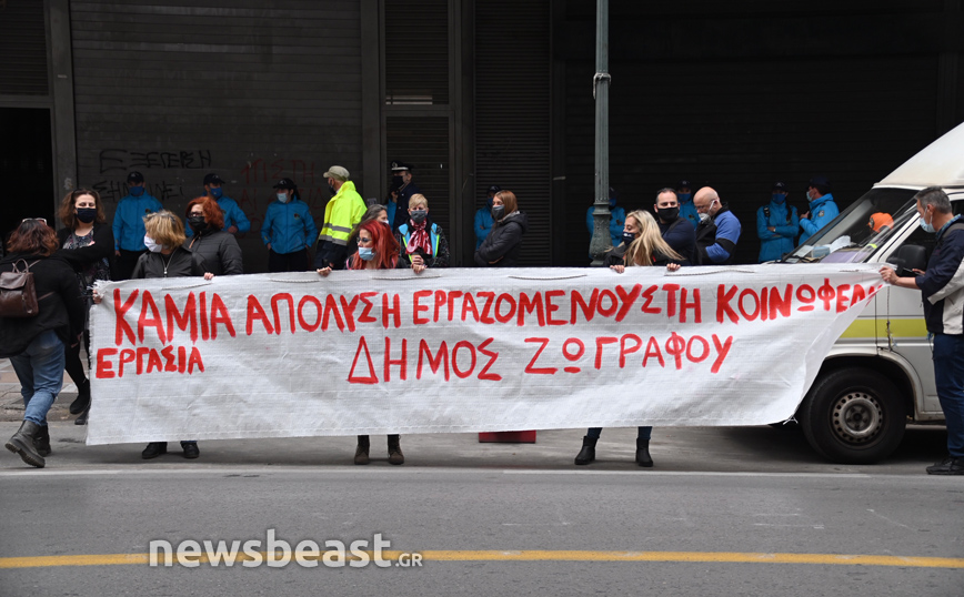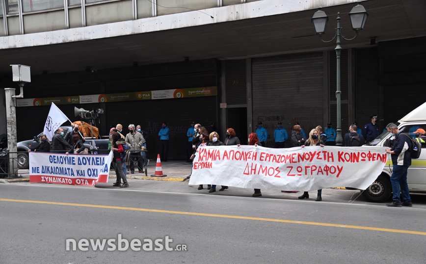 «Καμία απόλυση εργαζόμενου στην “κοινωφελή εργασία”!» και «Θέλουμε δουλειά με δικαιώματα και όχι ανεργία», είναι -μεταξύ άλλων- τα αιτήματα των σωματείων.