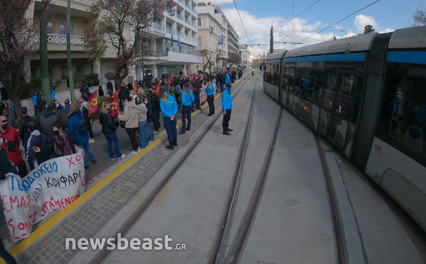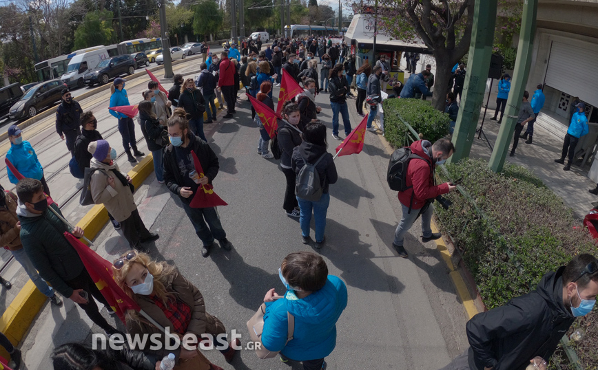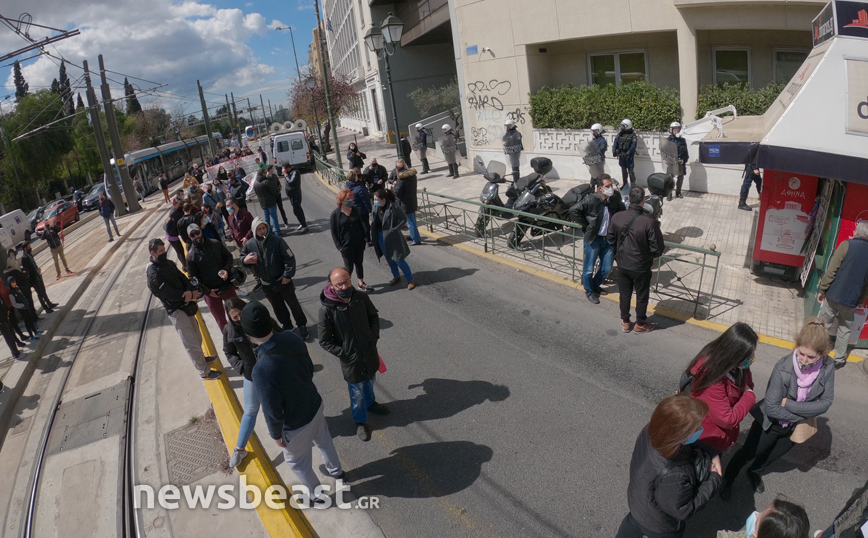 Παρά το γεγονός ότι για λίγο διεκόπη η κυκλοφορία στην Αμαλίας, καθώς η συγκέντρωση έγινε στον πεζόδρομο της Διονυσίου Αρεοπαγίτου, στις Στήλες Ολυμπίου Διός, αυτήν τη στιγμή διεξάγεται κανονικά.