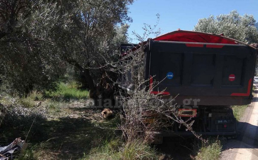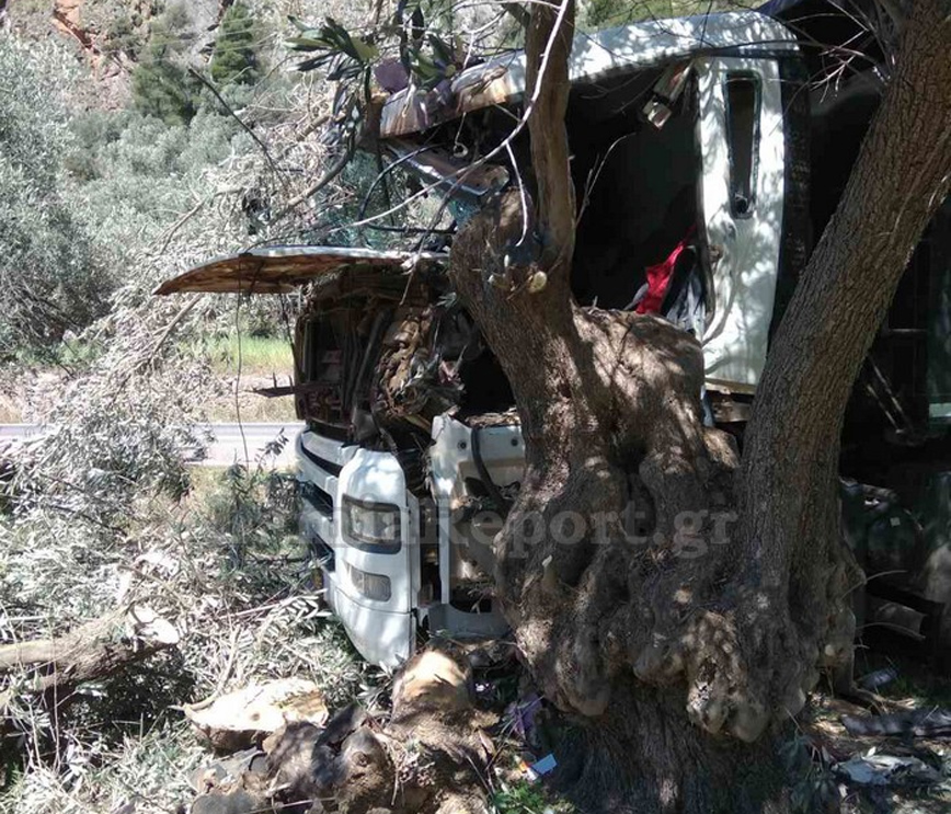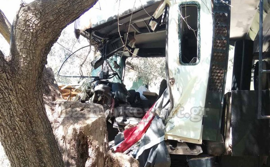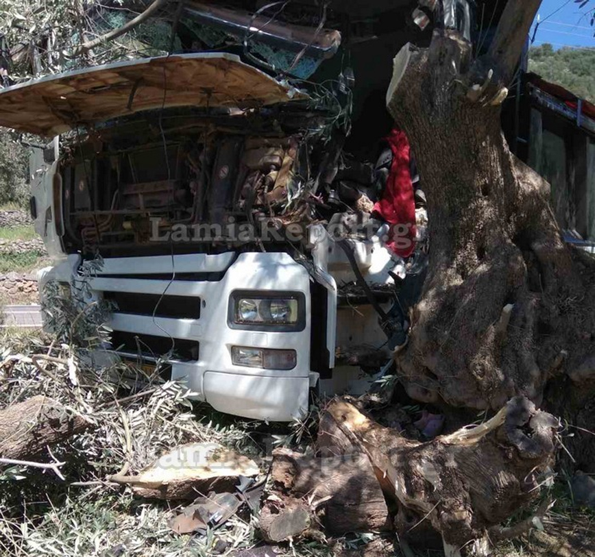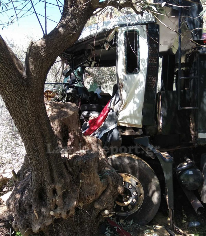 Για κακή του τύχη το βαρύ όχημα πήγε και καρφώθηκε σε αιωνόβια ελιά από την πλευρά του οδηγού, με αποτέλεσμα να τραυματισθεί θανάσιμα.