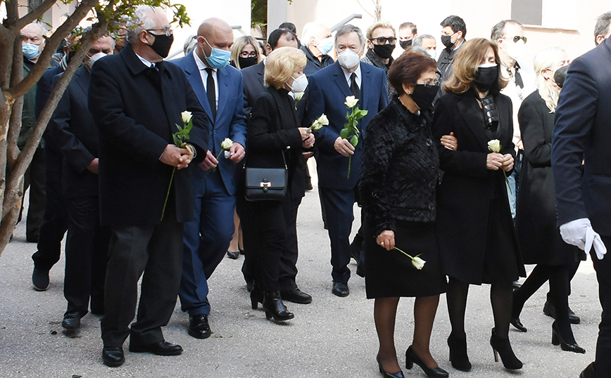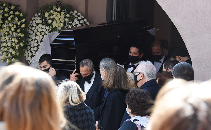 Τραγική φιγούρα η σύζυγος του, Έφη Πίκουλα η οποία φορώντας μαύρα ρούχα και μάσκα δεν μπορούσε να συνειδητοποιήσει πως δεν θα ξαναδεί τον άνθρωπο με τον οποίο μοιράστηκε τη ζωή της για 36 ολόκληρα χρόνια.