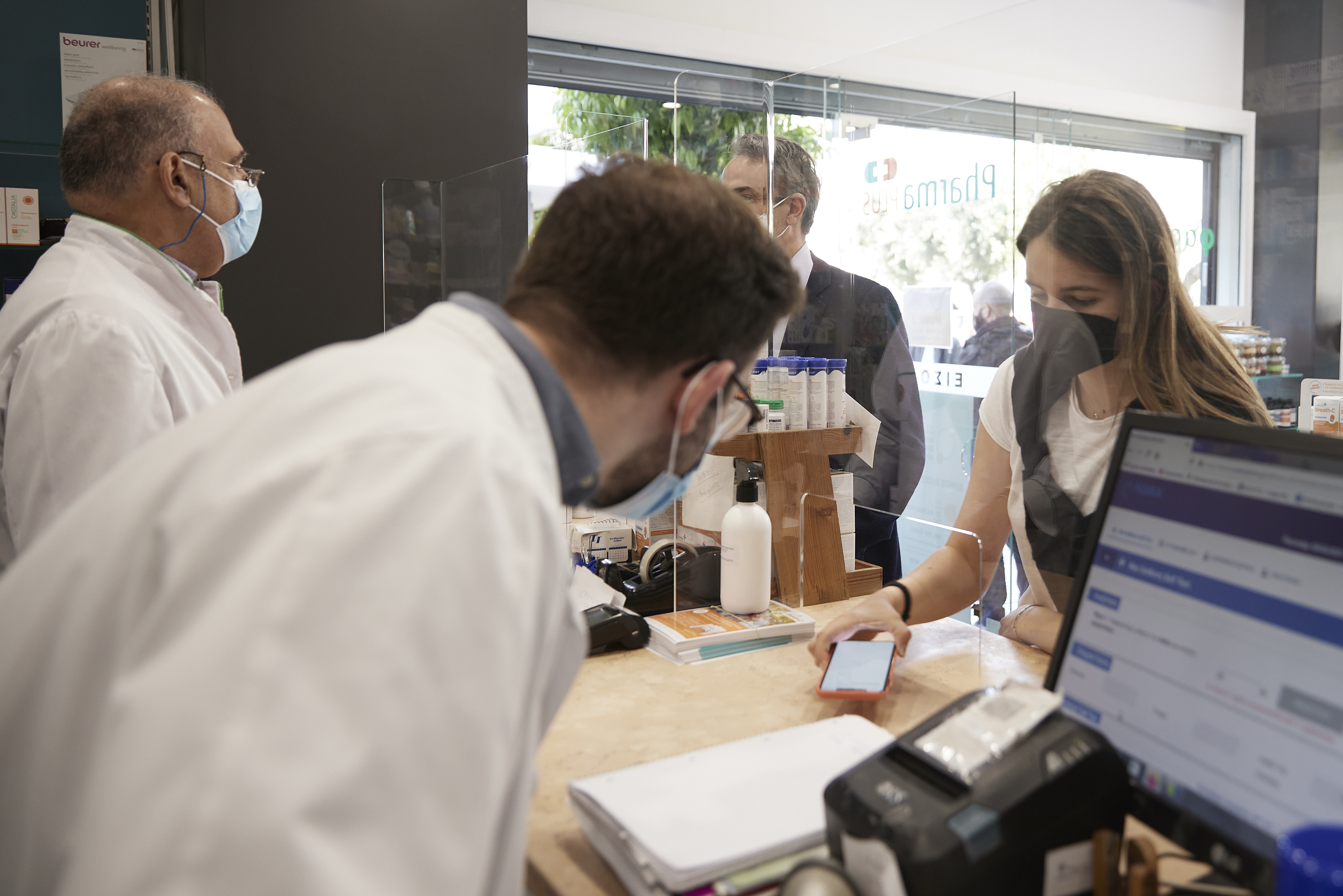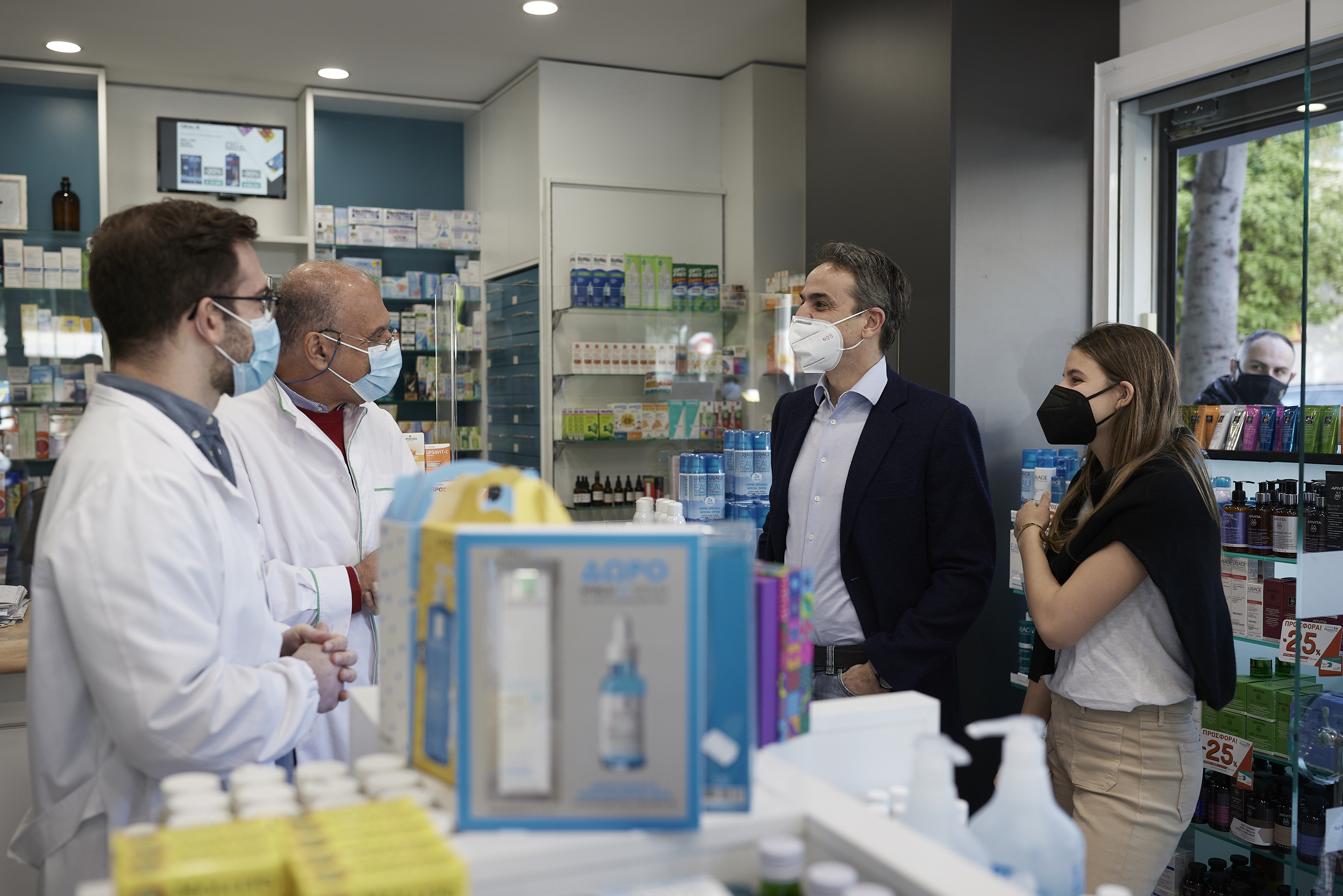 Ο Κυριάκος Μητσοτάκης εξήγησε ότι η Δάφνη βρίσκεται στην Γ’ Λυκείου, έτσι προσήλθαν στο φαρμακείο για την προμήθεια του self test. «Ήρθαμε να πάρουμε το τεστ μας. Πώς πάνε μέχρι στιγμής οι παραδόσεις;», ρώτησε ο Πρωθυπουργός τον φαρμακοποιό για να απαντήσει πως «οι παραδόσεις επί του παρόντος σε εμάς είναι ομαλές. Η πλατφόρμα δουλεύει μία χαρά, είμαστε πάντα στο πλευρό του καθενός όποτε θέλει για διευκρινίσεις. Του τα εξηγούμε λεπτομερώς, για να έχει μία πρώτη άποψη. Από εκεί και πέρα του δίνουμε και τις οδηγίες και πάντα εδώ είμαστε, τα τηλέφωνά μας τα ξέρουν».
