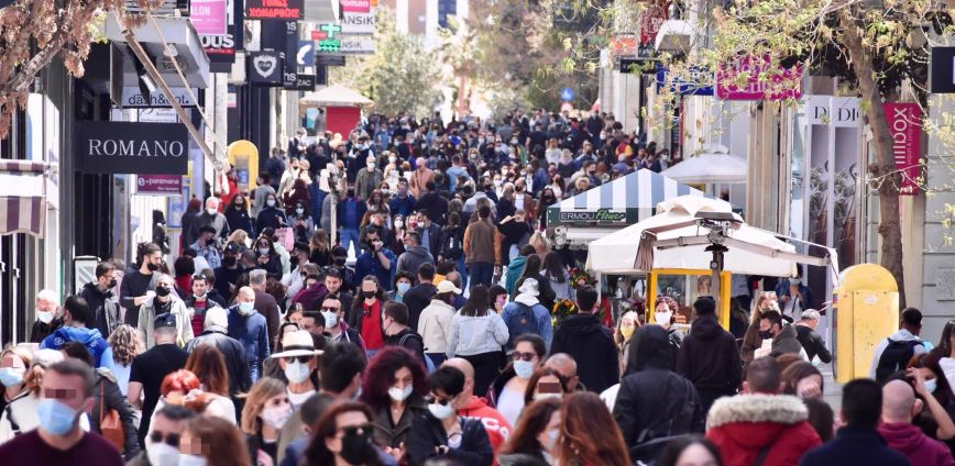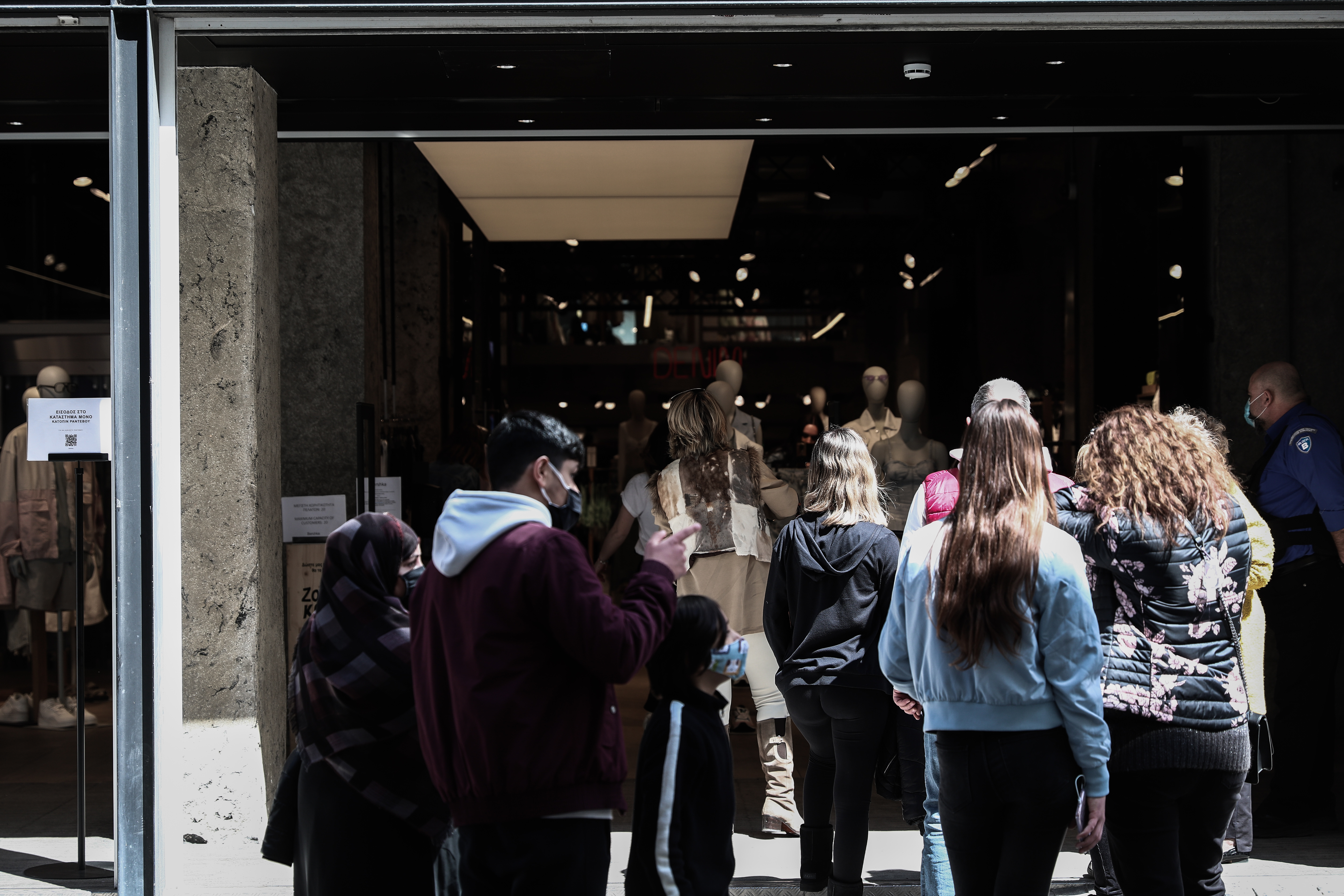 Ο καλός καιρός σε συνδυασμό με τα ανοιχτά καταστήματα έφερε αρκετό κόσμο στο κέντρο της Αθήνας.