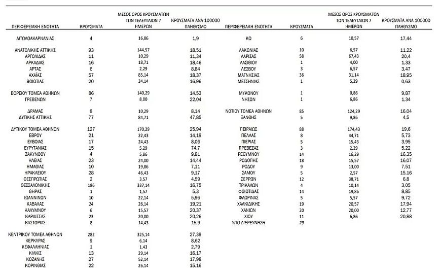 77 κρούσματα στην ΠΕ Δυτικής Αττικής