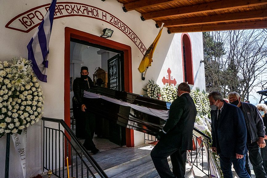 Ο γιος του Γιώργου Καραϊβάζ, αποχαιρέτησε τον πατέρα του με έναν επικήδειο λόγο.
