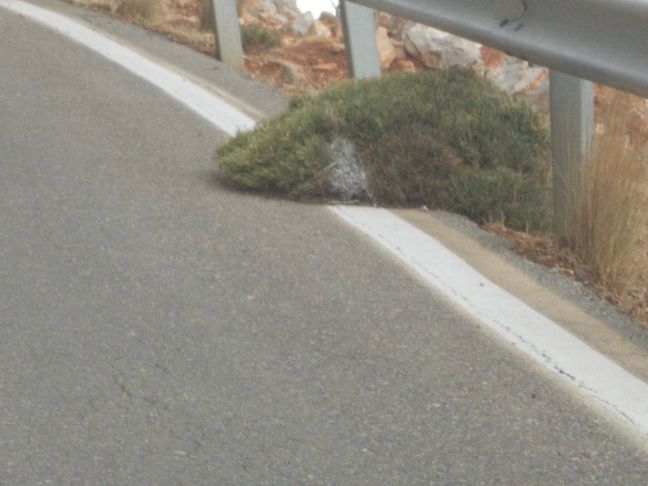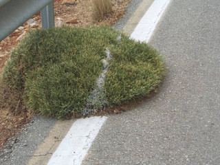 Ακόμη και τους θάμνους που προεξείχαν στο δρόμο έβαψαν οι εργάτες που πραγματοποίησαν τη χάραξη των φωτεινών διαχωριστικών γραμμών σε επαρχιακούς δρόμους του νομού Ηρακλείου.