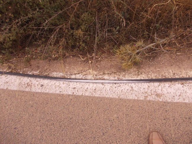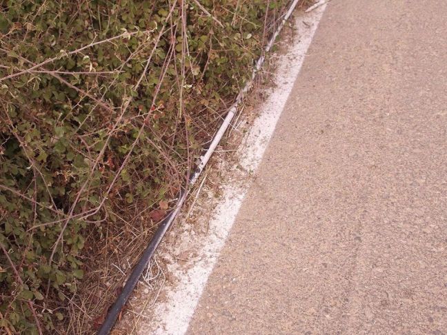 Κάτι ανάλογο έγινε και σε άλλο σημείο του δρόμου, όπου αυτή τη φορά βάφτηκαν και τα λάστιχα άρδευσης.