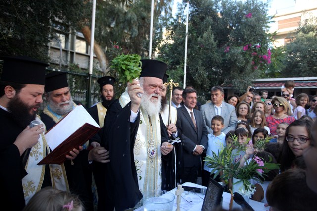 Σε επισκέψεις του, στο 15ο δημοτικό σχολείο Αθηνών και στο 17ο Γυμνάσιο και Λύκειο ΜΕΤΣ όπου και τέλεσε την ακολουθία του αγιασμού, παρουσία του Γενικού Γραμματέα Θρησκευμάτων του Υπουργείου Παιδείας κ. Γιώργου Καλατζή και του Δημάρχου Αθηναίων, ο Αρχιεπίσκοπος αναφέρθηκε στις αγωνίες των νέων παιδιών για το μέλλον και τους ζήτησε να μην ξεχνούν πως οι στόχοι τους πρέπει να συντροφεύονται από την αρετή και την αγάπη και όχι τον εγωισμό και την αυταρέσκεια.