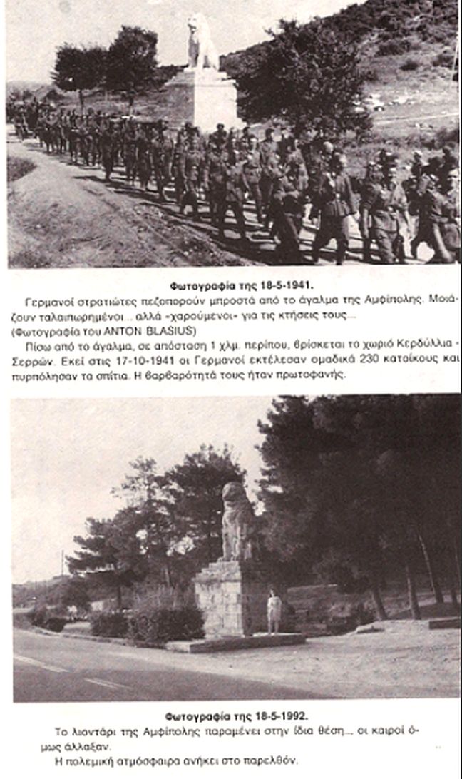 Στην άλλη φωτογραφία, όπως επισημαίνει το seleo.gr Γερμανοί στρατιώτες προχωρούν μπροστά από τον Λέοντα της Αμφίπολης.