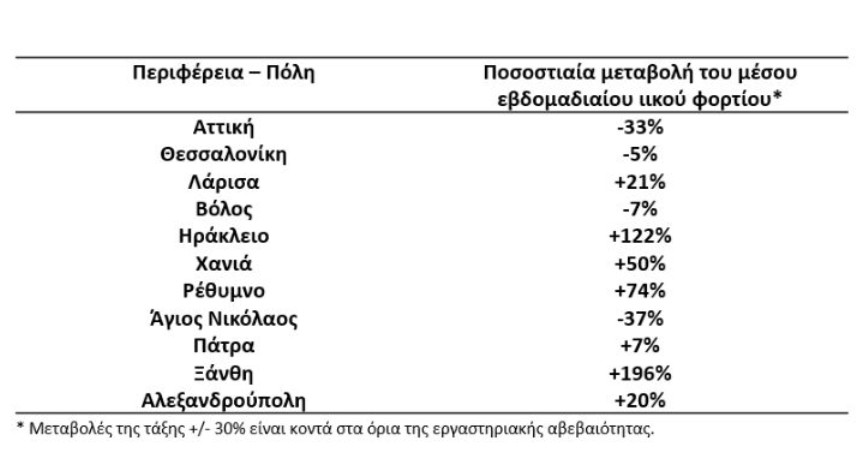 Οι αυξητικές τάσεις κυμαίνονται από +50% στα Χανιά μέχρι +196% στην Ξάνθη. Επισημαίνεται ότι οριακές θεωρούνται οι αυξήσεις που παρατηρήθηκαν στην Αλεξανδρούπολη (+20%) και στη Λάρισα (+21%) καθώς στις δύο αυτές περιοχές οι μεταβολές εμπίπτουν στα όρια της εργαστηριακής αβεβαιότητας.