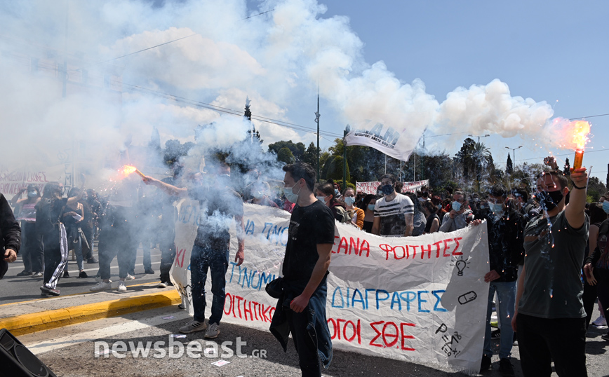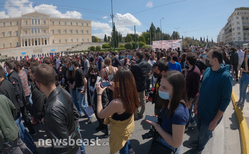 Οι διαδηλωτές και οι διαδηλώτριες με κεντρικό σύνθημα «Έξω η αστυνομία από τις σχολές μας, ο νόμος Κεραμέως- Χρυσοχοΐδη θα ανατραπεί» συγκεντρώθηκαν αρχικά στα Προπύλαια και πρόκειται να κατευθυνθούν στη Βουλή.