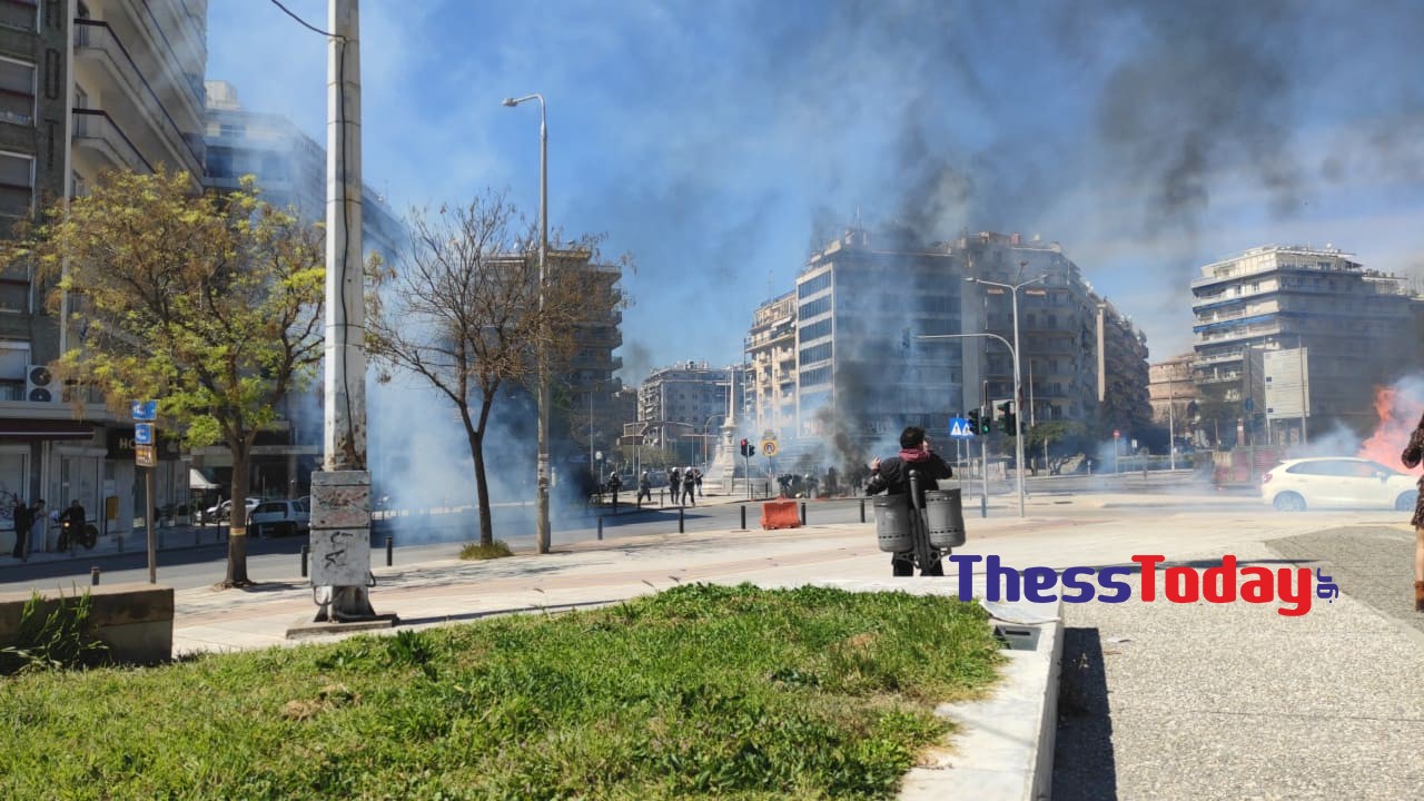 Υπάρχουν αναφορές για τραυματία αστυνομικό από μολότοφ, ενώ οι εικόνες χάους συμπληρώνονται με μολότοφ που εκτοξεύτηκε κάτω από αμάξι, με κίνδυνο να προκληθεί έκρηξη στο κέντρο της Θεσσαλονίκης.