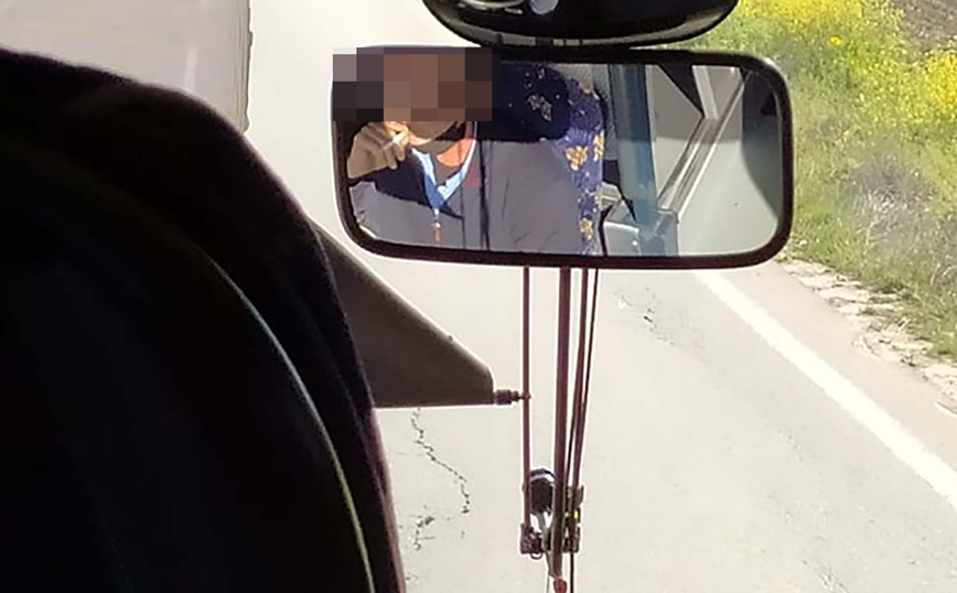 Όπως σημειώνει ο οδηγός του λεωφορείου όχι μόνο δε φορούσε μάσκα, αλλά κάπνιζε κιόλας. Μάλιστα απέστειλε και σχετικές φωτογραφίες στο onlarissa.gr.