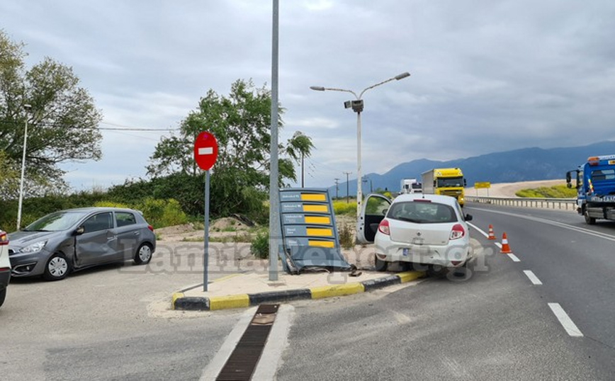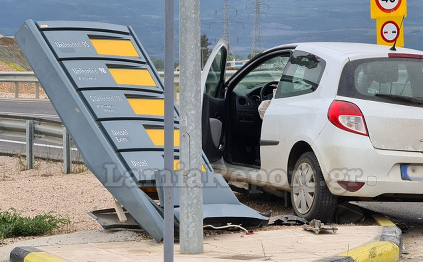 Λίγο πριν τις 12:30 το μεσημέρι στο ύψος της εξόδου της Λαμίας, στον παράδρομο είχαμε τη σύγκρουση δύο οχημάτων, με το ένα εξ αυτών να σταματά πάνω στις προστατευτικές μπάρες και την πινακίδα του βενζινάδικου.