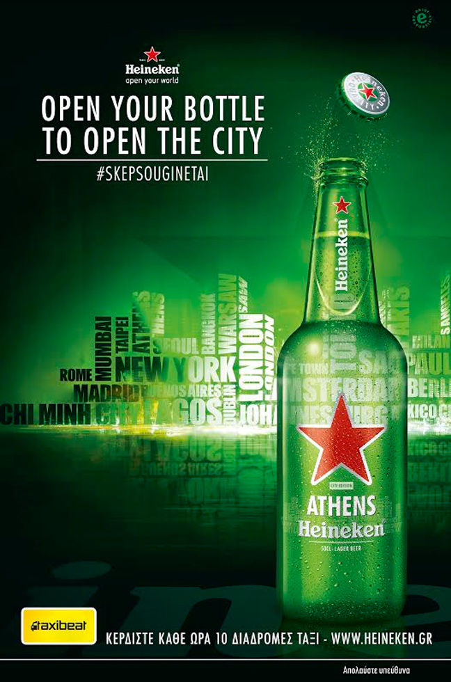 Στο πλαίσιο της νέας καμπάνιας, η Heineken δημιούργησε και κυκλοφορεί συλλεκτικές φιάλες με τα ονόματα μεγάλων πόλεων στον κόσμο, μεταξύ των οποίων βρίσκονται και οι δικές μας: Αθήνα, Θεσσαλονίκη, Πάτρα και Ηράκλειο!