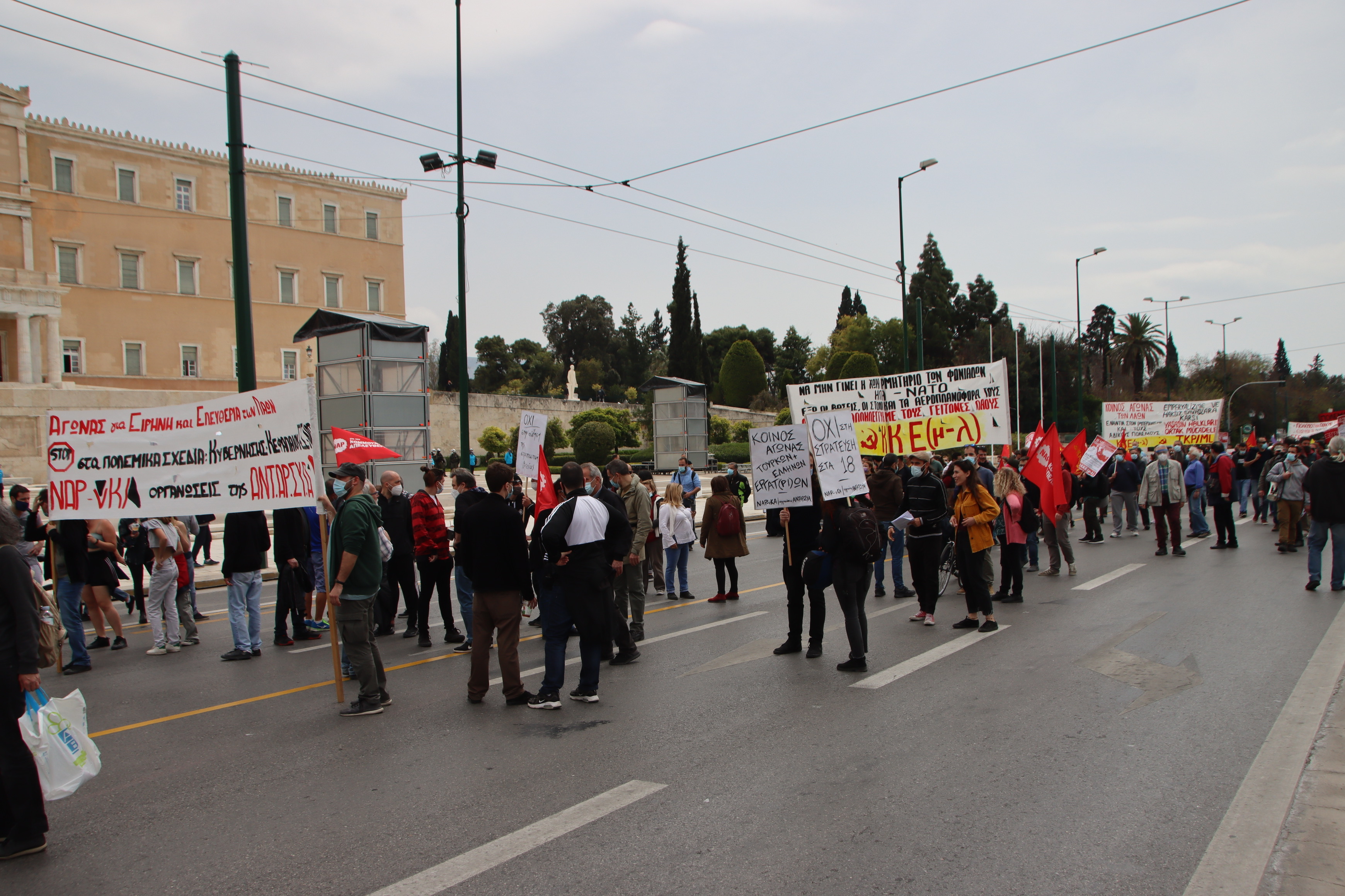 Αντιπολεμική συγκέντρωση πραγματοποιείται στο κέντρο της Αθήνας.
