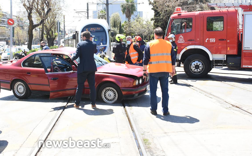 Ο άνδρας μεταφέρθηκε με ασθενοφόρο του ΕΚΑΒ σε νοσοκομείο και το όχημα το πήρε ο γερανός.. Στην επιχείρηση απεγκλωβισμού του συμμετείχαν 6 πυροσβέστες με 2 οχήματα. Τα δρομολόγια του τραμ διεξάγονται κανονικά.