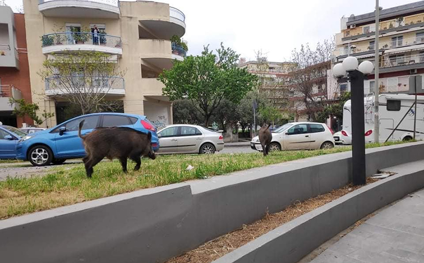 Αγριογούρουνα βρέθηκαν να κάνουν τη βόλτα τους σε προάστια της Θεσσαλονίκης χθες Κυριακή (18/4) προκαλώντας εντύπωση και κεντρίζοντας το ενδιαφέρον των περαστικών.