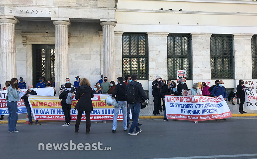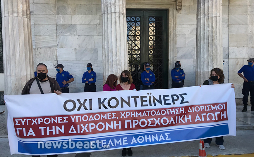 Οι γονείς διαμαρτύρονται για το ότι αν και εδώ και τρία χρόνια έχει ψηφιστεί η υποχρεωτική δίχρονη προσχολική αγωγή, στον Δήμο Αθηναίων, δεν έχει ανεγερθεί ούτε ένα νέο Νηπιαγωγείο.
