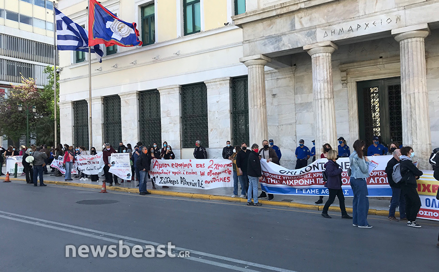 Σε παράσταση διαμαρτυρίας για την δίχρονη προσχολική αγωγή στο Δήμο Αθηναίων προέβη σήμερα η Ομοσπονδία Γονέων Αττικής στις 5:00 μ.μ. (ώρα διεξαγωγής του Δημοτικού Συμβουλίου) στο Δημαρχείο της Αθήνας, στην πλατεία Κοτζιά.