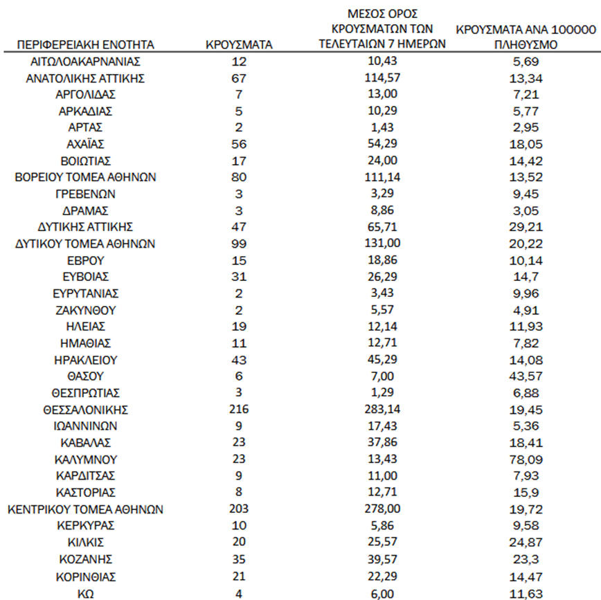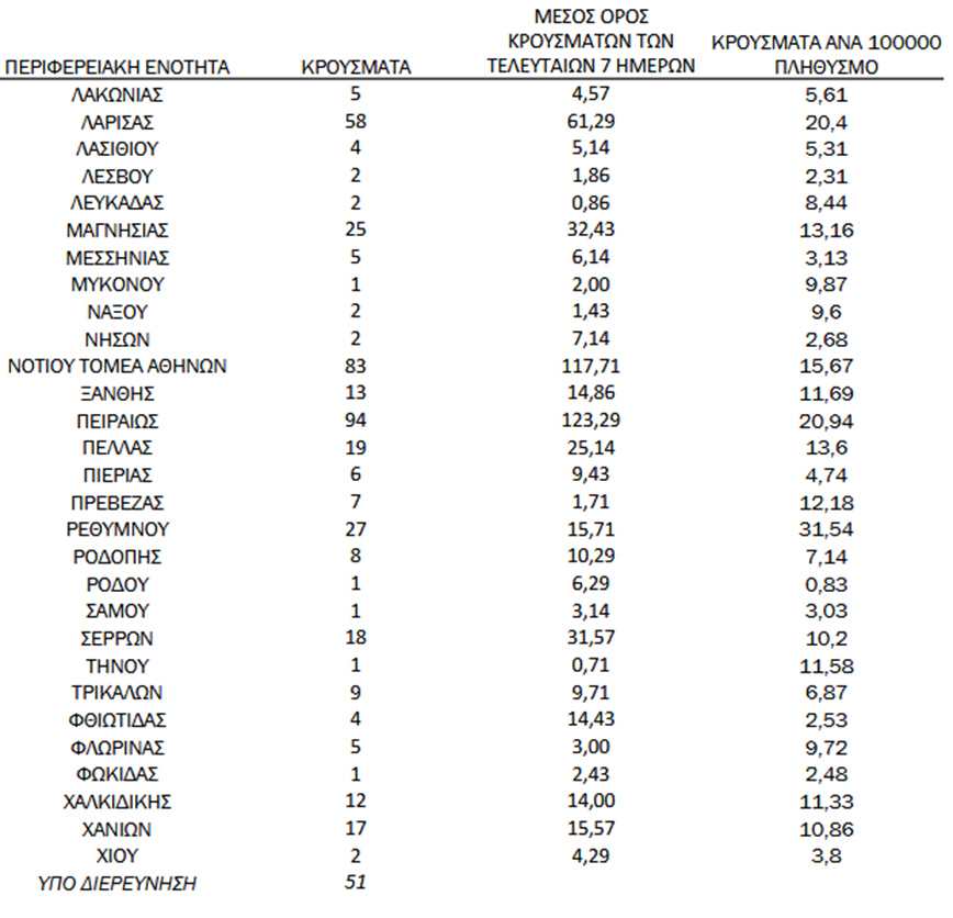 - 56 κρούσματα στην Π.Ε. Αχαΐας