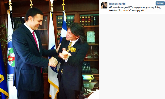 Δείτε τη φωτογραφία του Ηλία Ψινάκη με το Βασίλη Κικίλια στο Instagram.