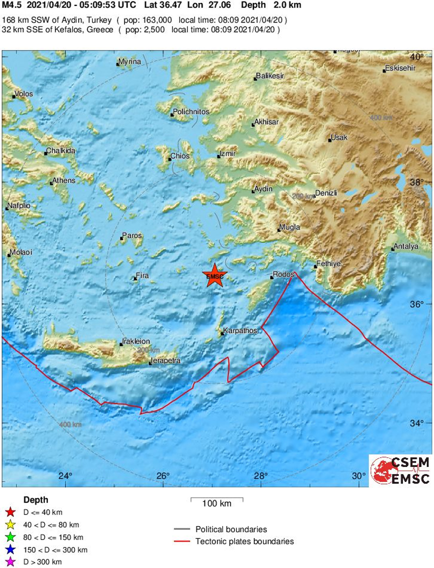 Το Ευρωμεσογειακό Ινστιτούτο υπολόγισε -με την αναθεώρηση- τη δόνηση στα 4,5 Ρίχτερ και το εστιακό βάθος στα 2 χλμ.