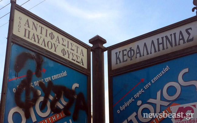 Η πορεία για τον ένα χρόνο από τη δολοφονία του Παύλου Φύσσα ξεκίνησε μερικά λεπτά πριν, ενώ προηγήθηκε η μετονομασία της Παναγή Τσαλδάρη σε οδό Αντιφασίστα Παύλου Φύσσα.