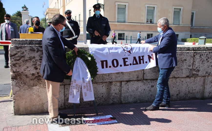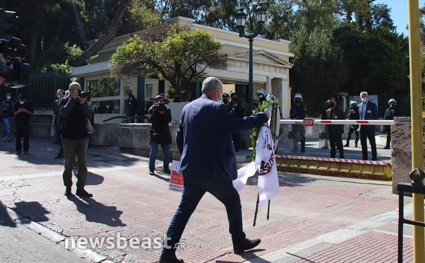 Μάλιστα, έξω από τη Βουλή ανάρτησαν ένα πανό για τους νεκρούς υγειονομικούς και κατήθηκε ενός λεπτού σιγή.
