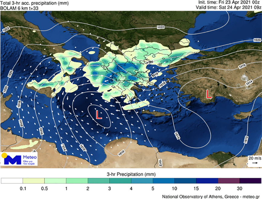 Το βαρομετρικό χαμηλό που προσεγγίζει τη χώρα μας, αναμένεται το Σάββατο και την Κυριακή να επηρεάσει πολλές περιοχές με έντονα φαινόμενα, σύμφωνα με τα νεότερα προγνωστικά στοιχεία του Εθνικού Αστεροσκοπείου Αθηνών/Meteo.gr.
