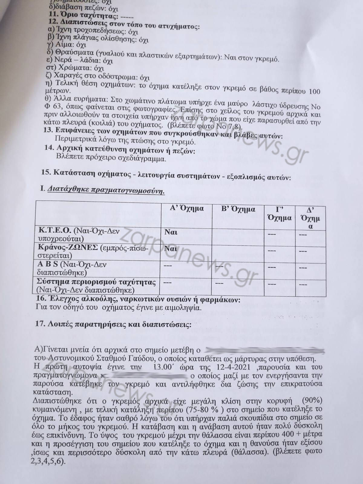 Σύμφωνα με το zarpanews.gr που παρουσίασε αποκλειστικά την έκθεση της αστυνομίας για το θανατηφόρο συμβάν, με τους αστυνομικούς να δοκιμάζουν στην πράξη την εκδοχή του 40χρονου οδηγού που επιβίωσε της πτώσης, καταρρίπτεται ουσιαστικά το ενδεχόμενο του λυμένου χειρόφρενου.