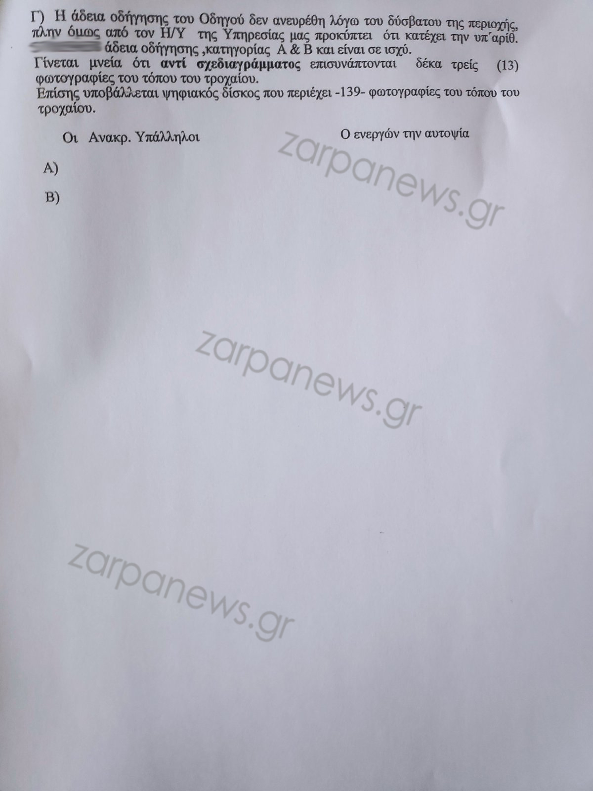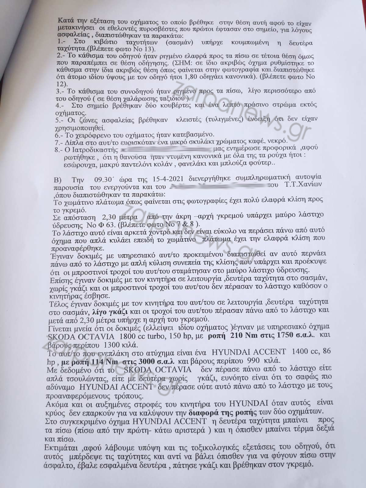 Όλα αυτά καταλήγουν στο συμπέρασμα οτι το αυτοκίνητο ήταν σε κίνηση και η μηχανή του σε πλήρη λειτουργία κατά τη στιγμή του ατυχήματος» υποστηρίζει το περιβάλλον της άτυχης Κορίνιας