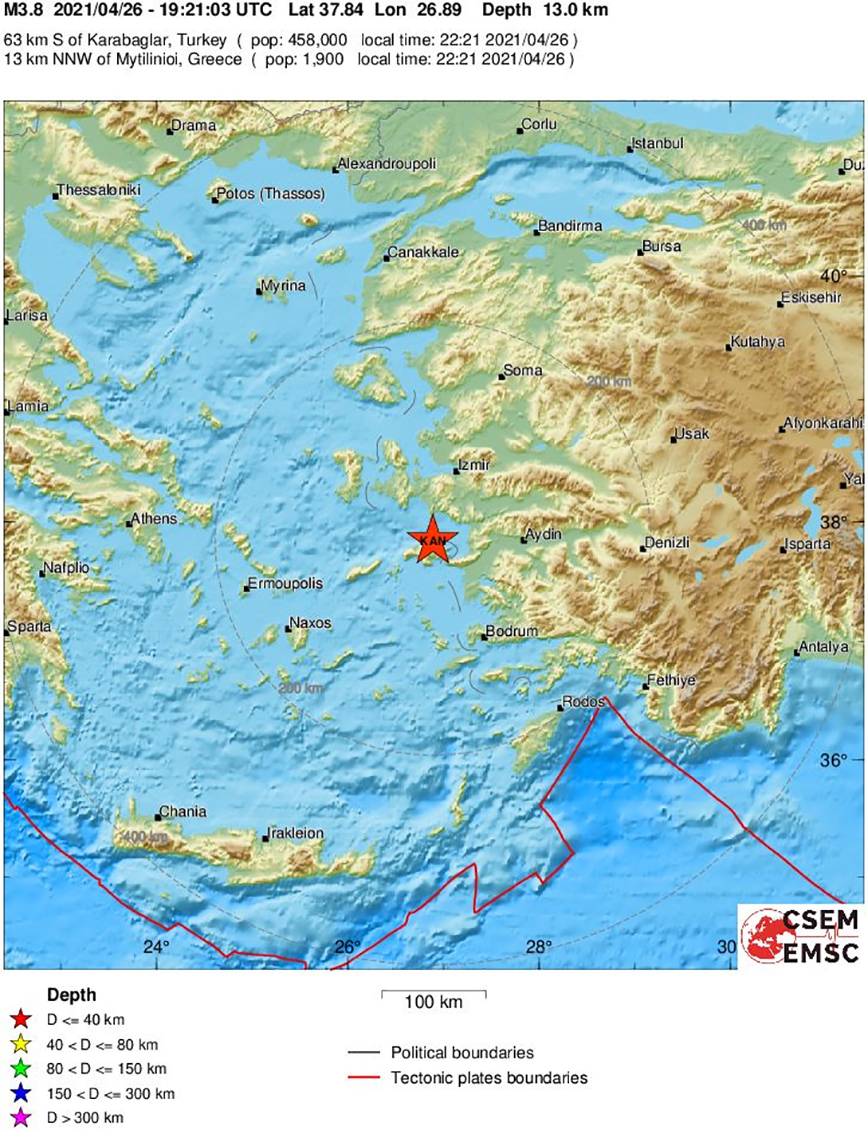 Το Ευρωμεσογειακό Ινστιτούτο υπολόγισε τη δόνηση επίσης στα 4 Ρίχτερ μετά την αναθεώρηση (3,8 η αρχική εκτίμηση).