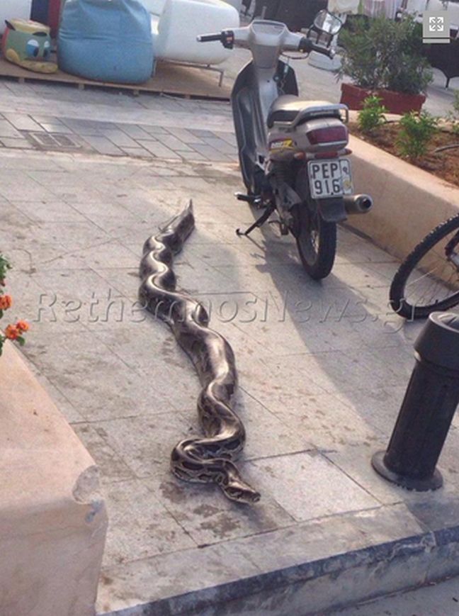 Σύμφωνα με το rethemnosnews.gr, το φίδι που σκόρπισε τον τρόμο στους κατοίκους της πόλης, είναι πύθωνας.