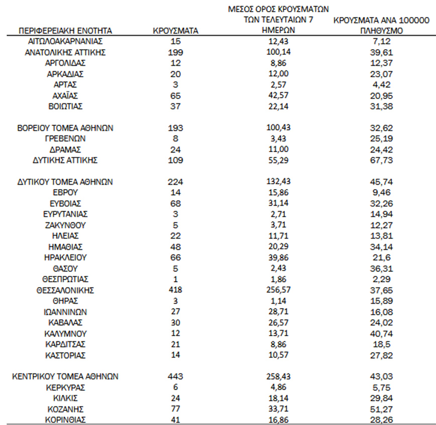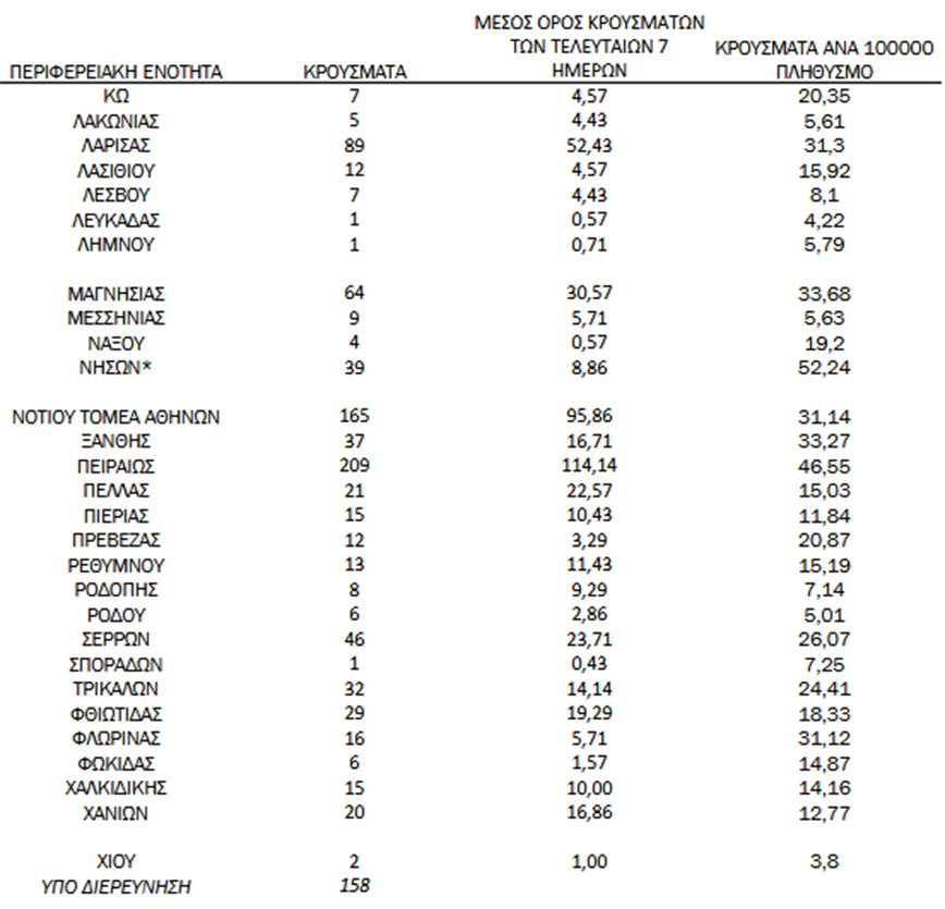 * Στην Π.Ε. Νήσων περιλαμβάνονται κρούσματα προηγούμενου χρονικού διαστήματος λόγω καθυστέρησης δήλωσης στο Μητρώο Covid-19