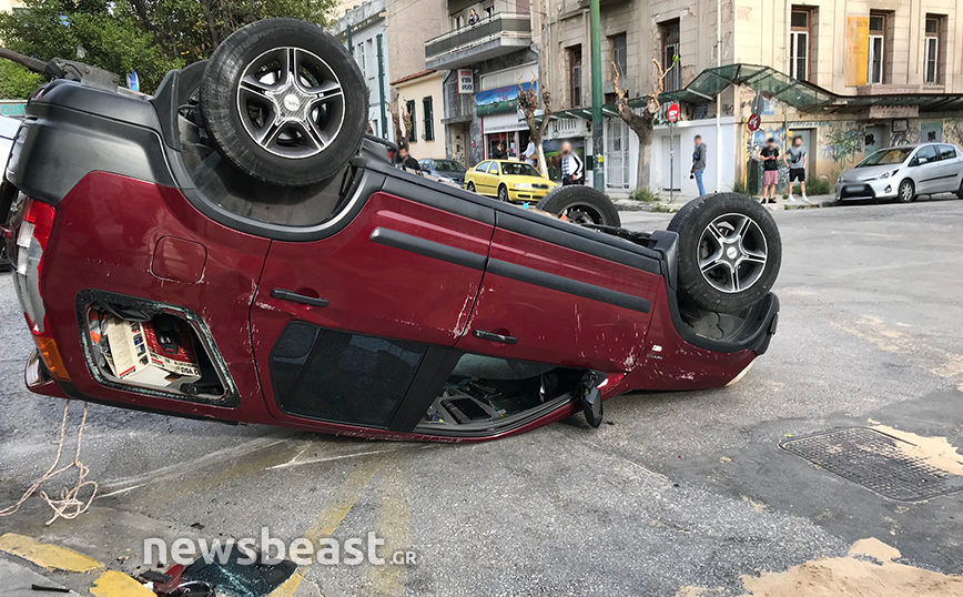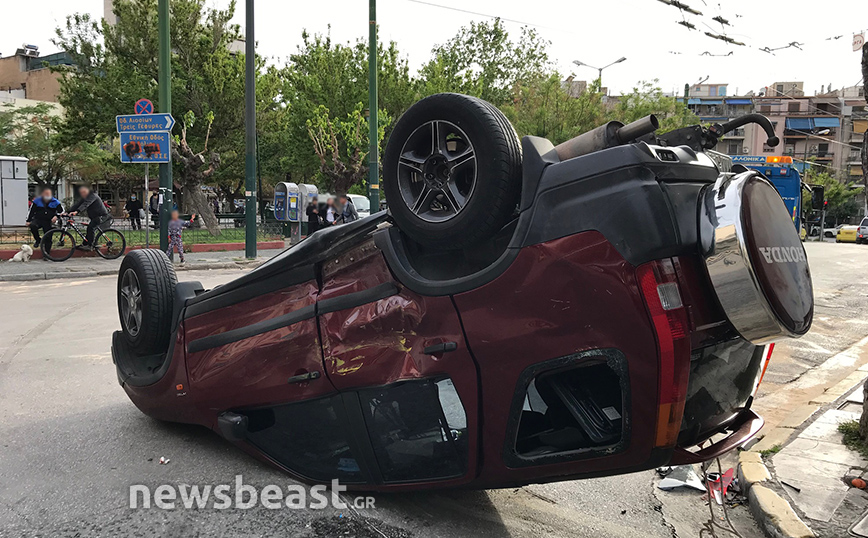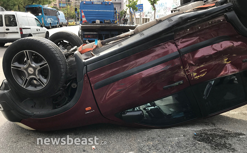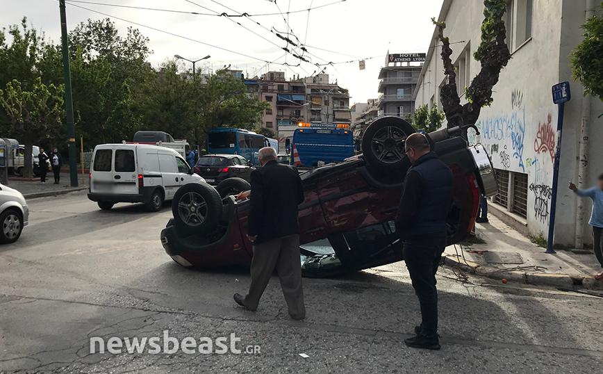 Τροχαίο που είχε ως αποτέλεσμα να αναποδογυρίσει ένα αυτοκίνητο σημειώθηκε το απόγευμα της Μεγάλης Τρίτης (27/4) στο κέντρο της Αθήνας.