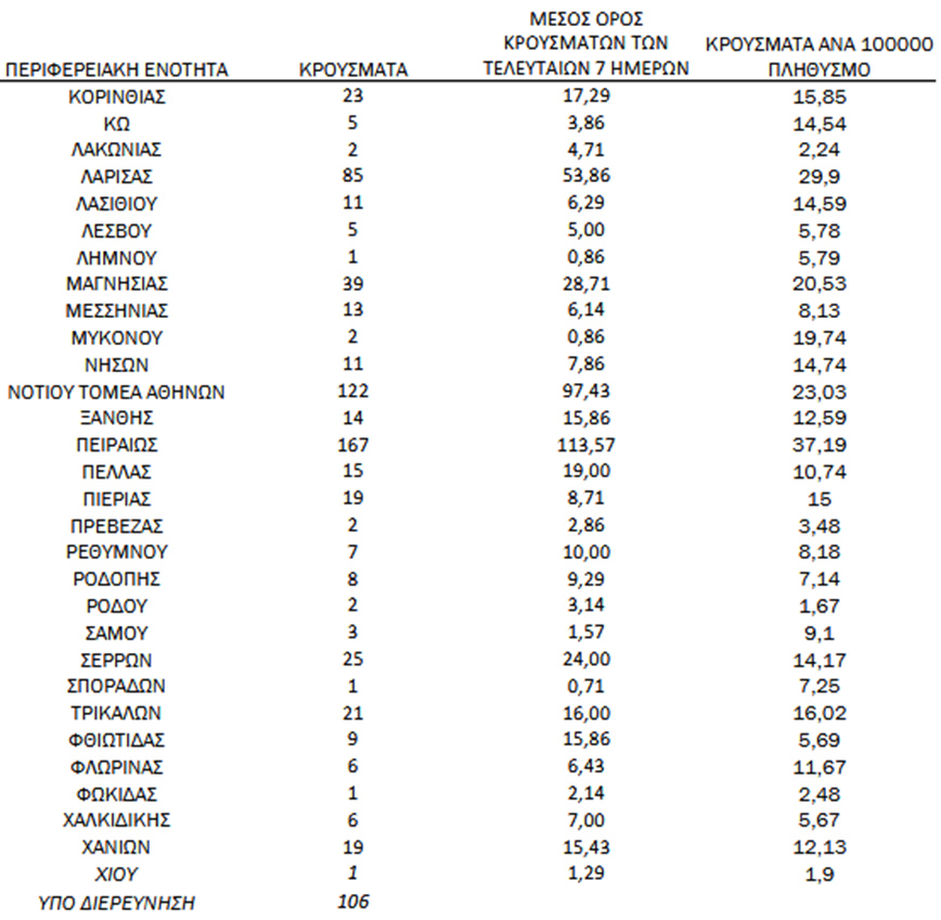 - 106 κρούσματα υπό διερεύνηση