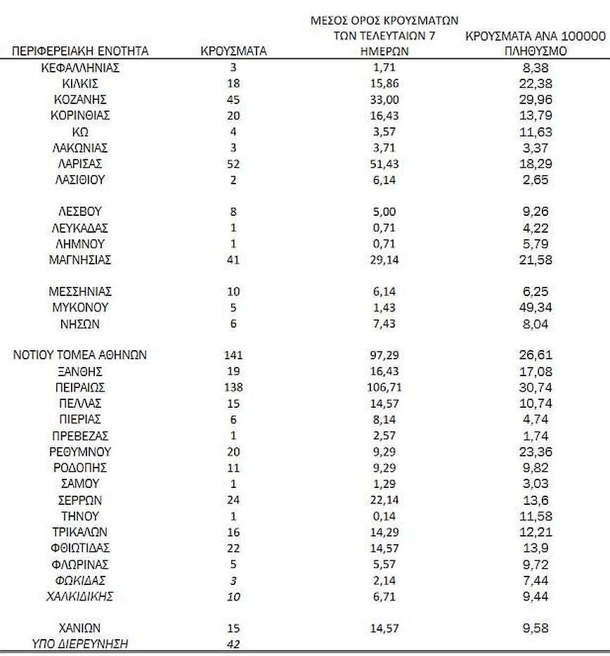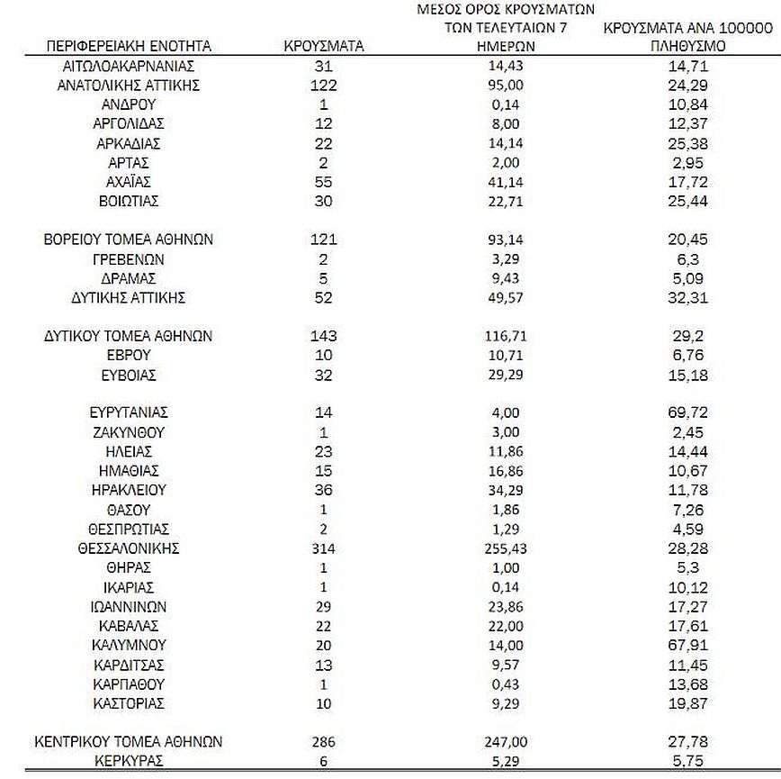 Αναλυτικότερα τα κρούσματα στις περιφερειακές ενότητες που ανήκουν στην Αττική: