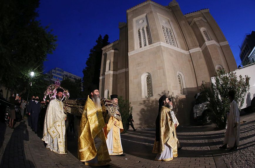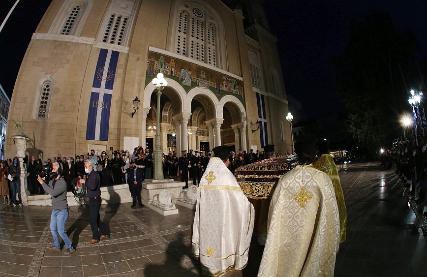 Η περιφορά του Επιταφίου έγινε στον προαύλιο χώρο του Ιερού Ναού, όπως προβλέπουν τα μέτρα πρόληψης που έχει λάβει η Πολιτεία για την αντιμετώπιση της πανδημίας, ενώ οι πιστοί συμμετείχαν με την προσήκουσα ευλάβεια τόσο εντός του ναού όσο και στην Πλατεία Μητροπόλεως.