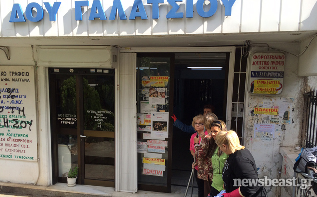 Σε μια συμβολική κίνηση διαμαρτυρίας οι απολυμένες καθαρίστριες του υπουργείου Οικονομικών έπιασαν ξανά τις σκούπες και επιχείρησαν να καθαρίσουν το κτίριο που στεγάζει τη ΔΟΥ Γαλατσίου.