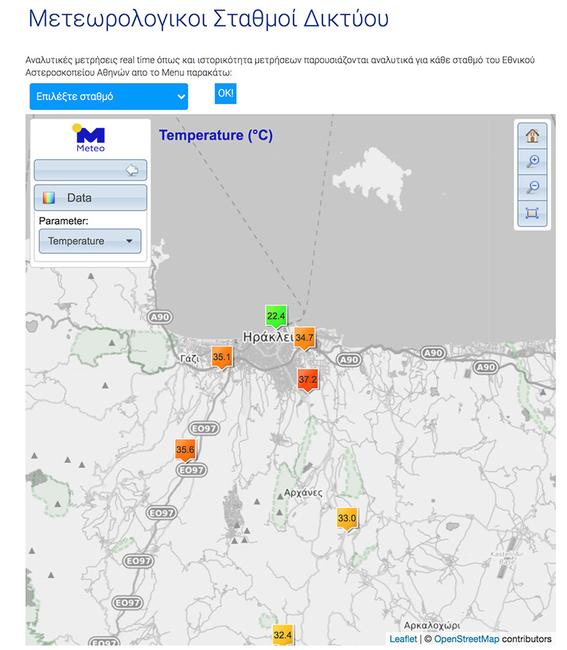 Εξάλλου πολύ μεγάλη θερμοκρασιακή διαφορά μεταξύ των παραθαλάσσιων περιοχών της πόλης του Ηρακλείου και της περιοχής της Κνωσού κατέγραψαν οι μετεωρολογικοί σταθμοί του Εθνικού Αστεροσκοπείου Αθηνών/meteo.gr.