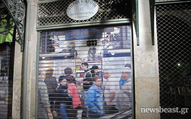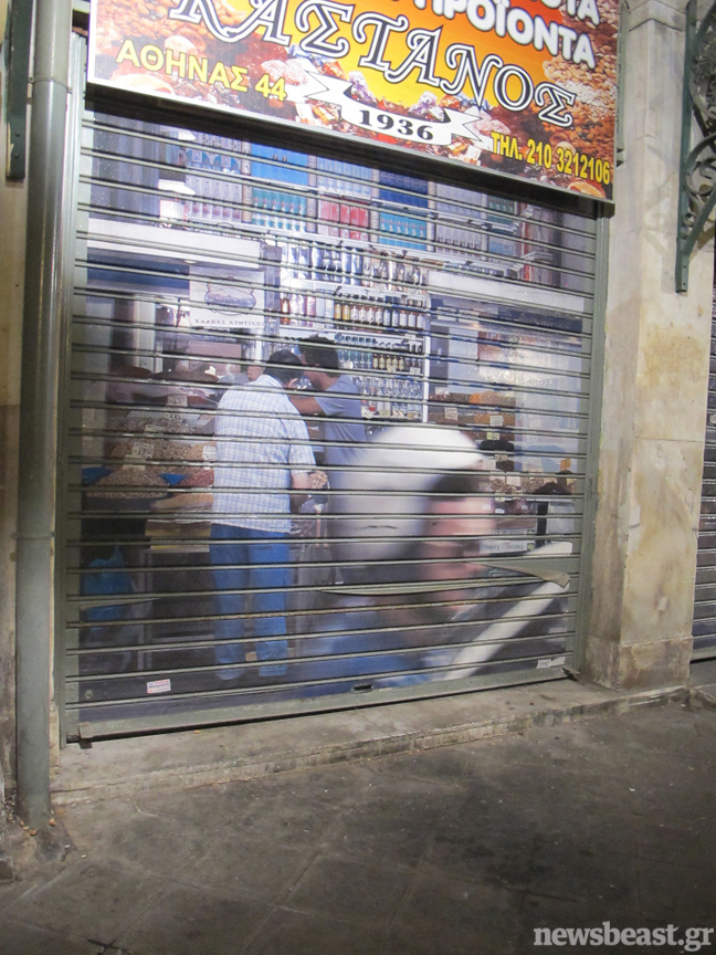 Είναι λίγο μετά τα μεσάνυχτα στο κέντρο της πόλης… όταν ο κόσμος που περπατά αδιάφορος στο μαλακό υπογάστριο της, σαστίζει εν μέρει με το θέαμα… Στην οδό Αθηνάς, δίπλα από την είσοδο της Βαρβακείου αγοράς, καταστήματα με ξηρούς καρπούς, με μπαχαρικά και βότανα, αν και κλειστά, φαίνεται να «διανυκτερεύουν» αφού κόσμος απεικονίζεται να ψωνίζει στο εσωτερικό τους.