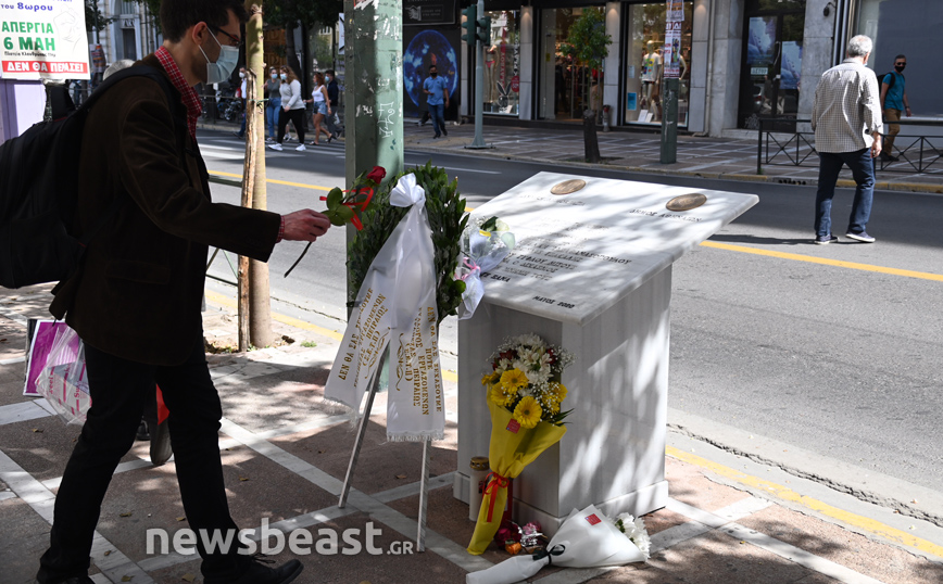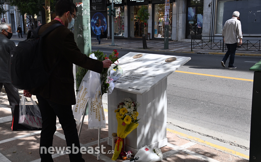 Στεφάνι στο σημείο από νωρίς το πρωί της Τετάρτης (5/5) άφησε ο Σύλλογος Εργαζομένων της Τράπεζας Πειραιώς. Στην κορδέλα του γράφει «δεν θα σας ξεχάσουμε ποτέ».